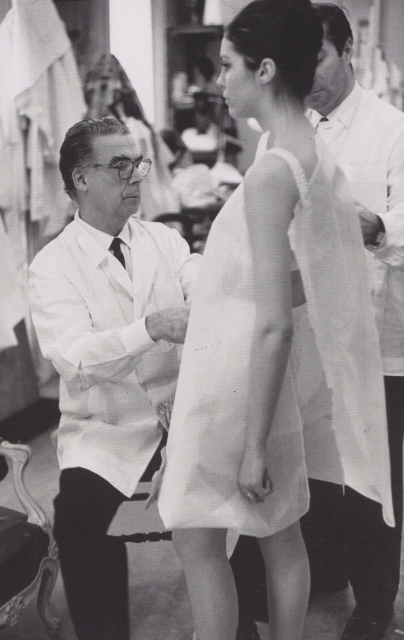 In the 1950s, he began dismantling the rigid waistlines of the era — corsets and constricting forms were left behind. In their place came cocoon coats, “bubble” dresses, tunics, sack dresses, and baby-dolls. These garments didn’t restrain a woman — they enveloped her in light, almost fluid architecture. Everything relied on hidden geometry: fine darts, perfectly balanced linings, and meticulously calibrated proportions. A woman looked effortless, yet every step she took moved through a space crafted with mathematical precision.
